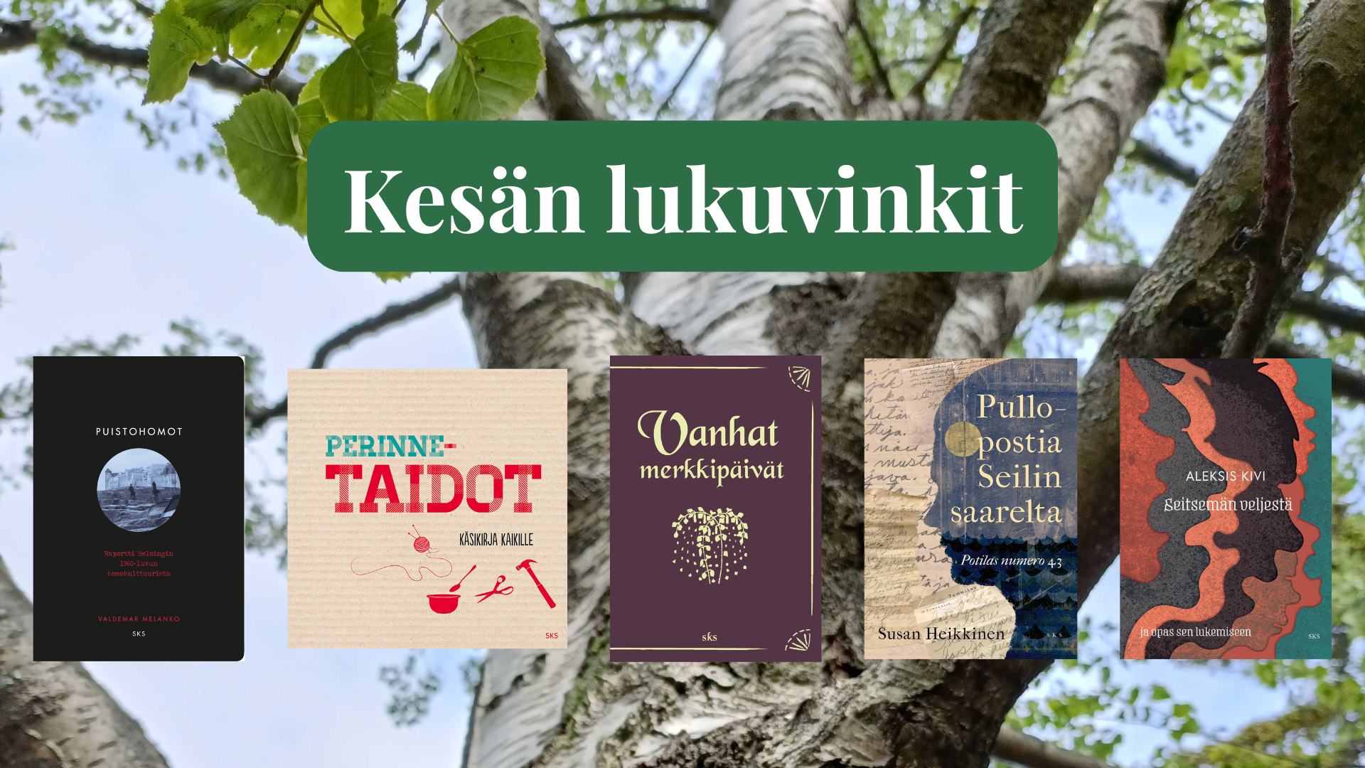 Suomen kesä on haikean lyhyt, mutta ajan kulkua voi hidastaa lukemalla. Lue auringossa, terassilla, uimarannalla. Lue saunassa, jos uskallat. Omatuntosi ehkä kestää sen paremmin, jos olet ostanut kirjan omaksesi. Viisi lukuvinkkiä kesään: